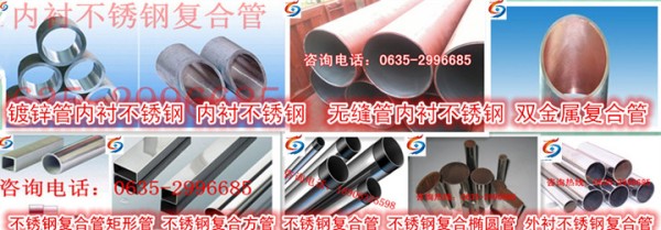 新疆不銹鋼復合管、新疆內襯不銹鋼復合管、新疆雙金屬復合管-內襯不銹鋼復合管是以普通碳素鋼為基材,以薄壁不銹鋼為內襯,利用一項新技術:螺旋溫滾復合技術,從而使基管與襯管得到緊密結合,使復合管呈現最佳的狀態。由于內襯不銹鋼復合管的良好性能使其廣泛應用于石油、化工、消防、能源與環保、化肥與造紙、市政建設等行業。專家認為這是純不銹鋼管,銅管的代替產品。
